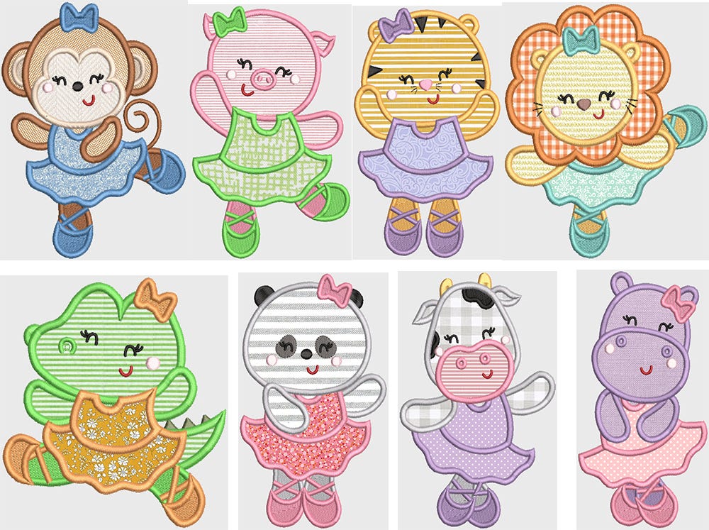 8 more sweet ballerina animals in applique!