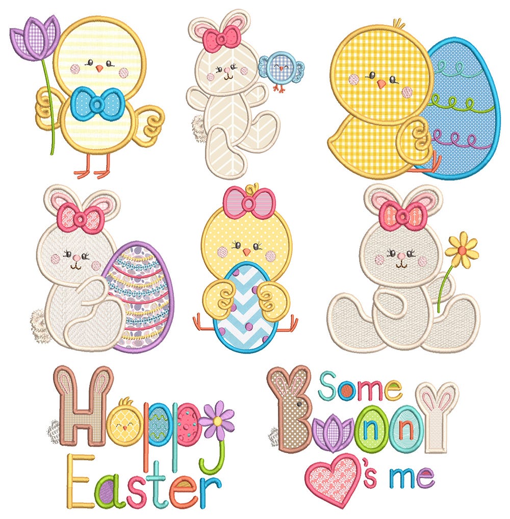 8 super sweet and happy designs for Easter in applique.