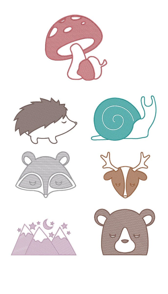 These one-color, embroidery-only designs feature a light and airy "sketch" fill with satin stitch outline.Ā