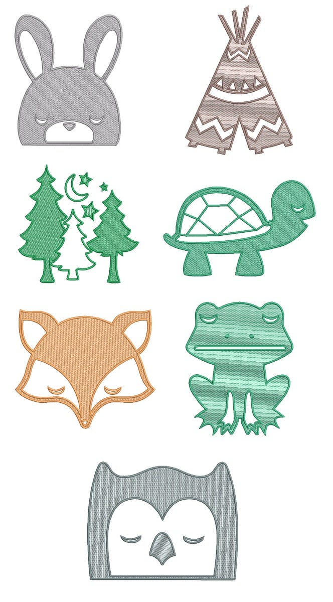 These one-color, embroidery-only designs feature a light and airy "sketch" fill with satin stitch outline.Ā