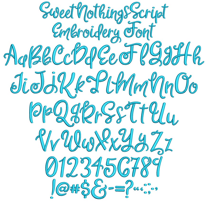 This font also includes BX format to be used withĀ Embrilliance softwareĀ Ā as a keyboard font. If you do not own software,Ā EmbrillianceĀ offers a basic FREE software for you to install the BX file and easily TYPE your words and phrases! File installation instructions are included with your purchase. Be sure to visitĀ www.embrilliance.comĀ to learn about the full version of their software program to allowĀ you, even more flexibility and options.