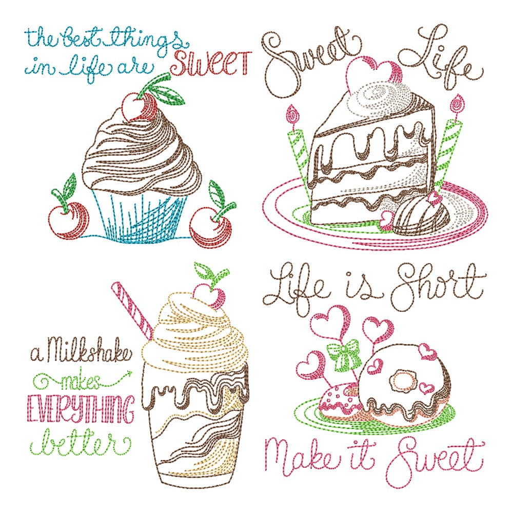 Celebrate the sweetness of life with our Sweet Quotes embroidery design set! This collection includes four dessert-themed word art designs, each featuring a sweet sentiment - perfect for kitchen decor and heartfelt gifts.
