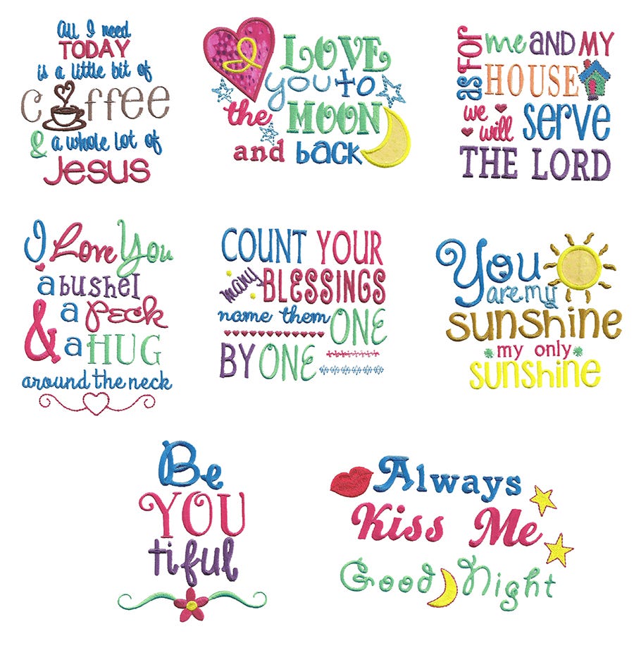 This is the first set in a series of my favorite quotes, sayings and Bible verses. Three sizes included. 5x7, 6x10 and 8x8 Perfect for clothing, pillows, wall hangings and more!
