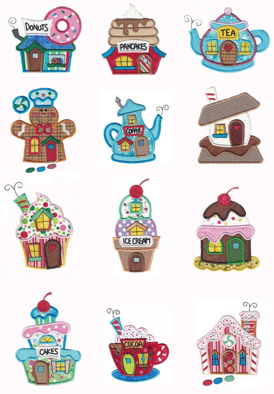 Calling all those with a sweet tooth! Here are 12 darling sweet shoppes in applique for all your projects! Each design comes in 4 sizes!