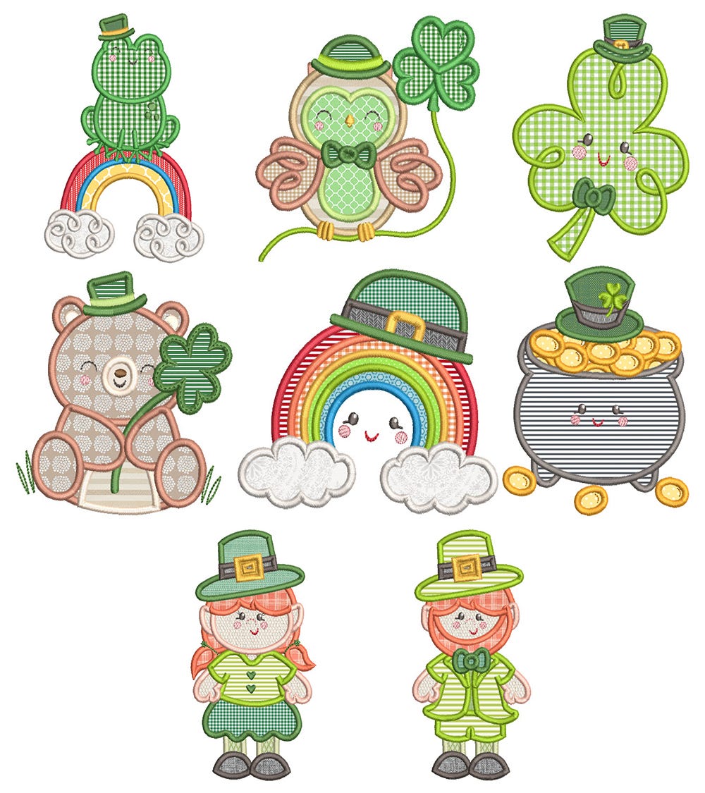 8 super sweet St. Patrick's Day themed designs in applique!