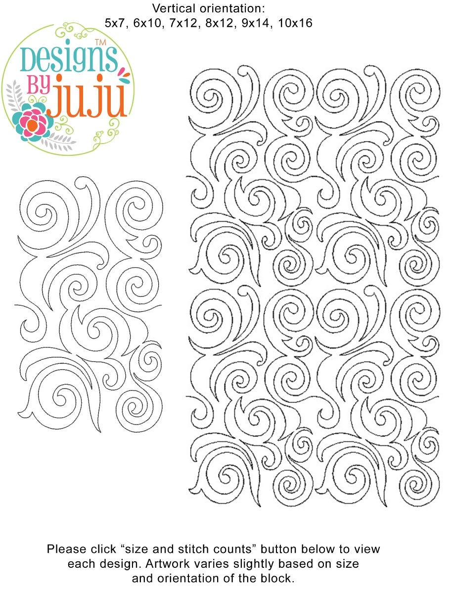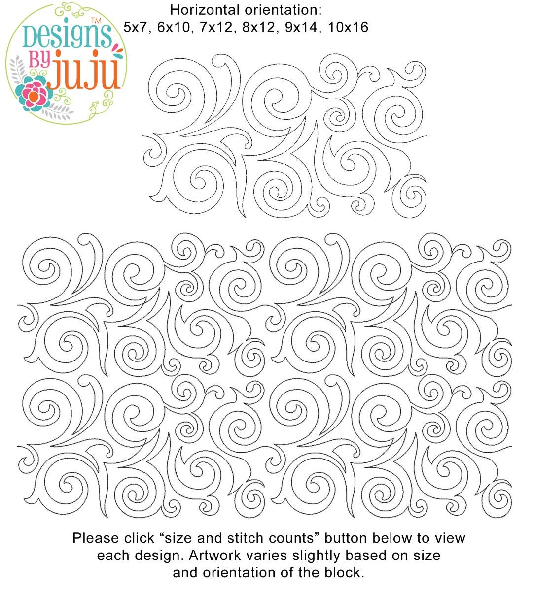 Each one of our End-to-End Quilting™ embroidery designs is an originally created design available in a large variety of block sizes. Every block is one continuous single-run line running edge to edge beginning on the left and exiting on the right. There is NO backtracking or double stitching. Each size block has been engineered and manually digitized by our team for EXACT edge-to-edge quilting precision so that when they are aligned properly in your hoop, you cannot tell where one block ends and the next one begins! ADDITIONALLY, the art has been created for each size so that when the rows are stacked on top of each other, it provides a practically seamless, professional, allover quilting effect that mimics (E2E) pantographs so you can do edge-to-edge quilting on your embroidery machine!