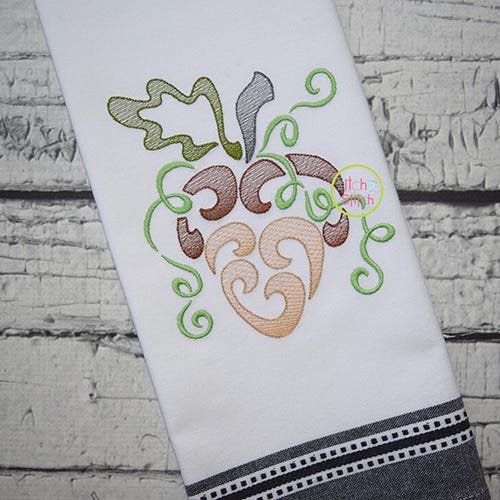 The light and airy "sketch" fill pattern allows for a quick stitch out. The space between each line of stitching varies such that it is more dense at one side of the shape than the other to create the shading effect. We do NOT recommend resizing designs with sketch elements in software.