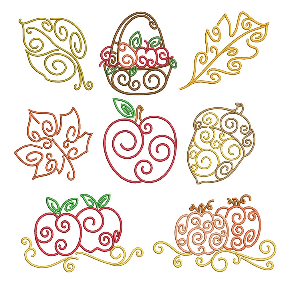 8 simply delightful swirly autumn motifs..perfect for that seasonal touch to your projects. Quick to stitch!