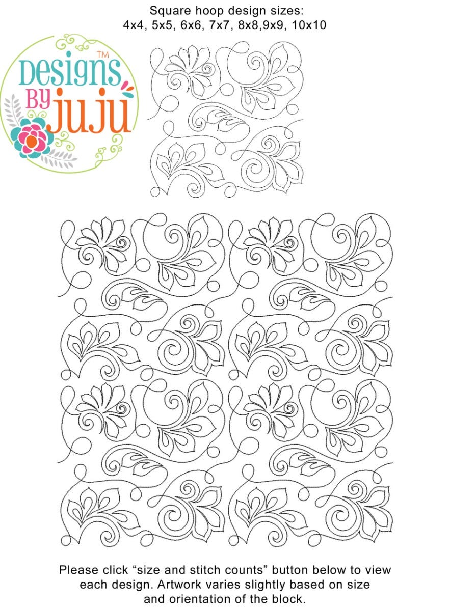 Please note: Both the scale of each pattern and arrangement of the motifs may vary based on the hoop size. Please click the "Size and Stitch Count" button to view the artwork for each size.