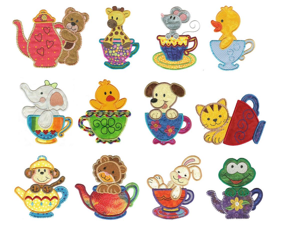 Cute playful critters are having a tea party! Both sizes are included. Fun!!!