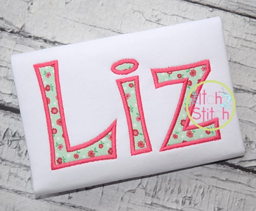 You will receive all Aa-Zz letters (52 files) in six sizes (3", 4", 5", 6", 7" and 8"). Please note that due to scale not all 4" letters will fit in the 4x4 hoop. The 5" W, 6" M, 6" W and several capital letters of the 7" size do not fit in the 5x7 hoop.Ā Shown personalized with our Teen GirlzĀ and Girls Have Many Secrets embroidery fonts, sold separately.