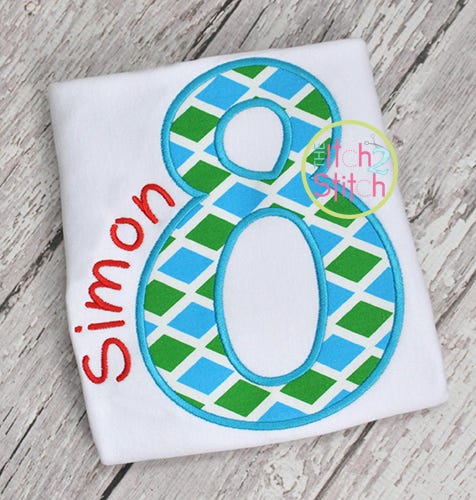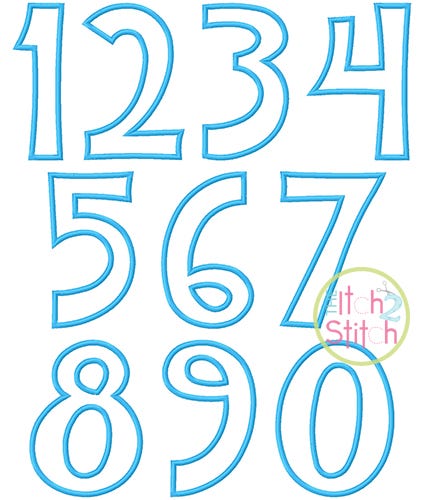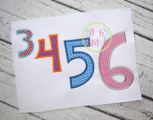 You will receive all numbers 0-9 (10 files) in six sizes (3", 4", 5", 6", 7" and 8"). All 3" and 4" numbers fit in the 4x4 hoop, and all 5", 6" and 7" numbers fit in the 5x7 hoop.Ā Shown personalized Cupcake Party, Happy Giraffe and Teen Girlz embroidery fonts, sold separately.