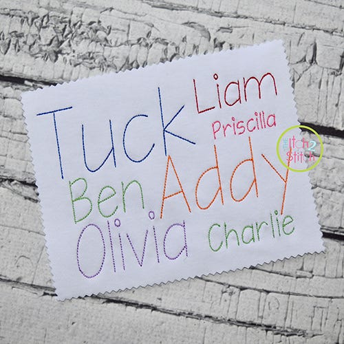 This is a three-pass backstitch font originally designed to stitch on fabric, not card stock.Ā Another version,Ā Teeny Tiny Narrow Greeting Card Font, designed and tested on watercolor paper is sold separately.Ā