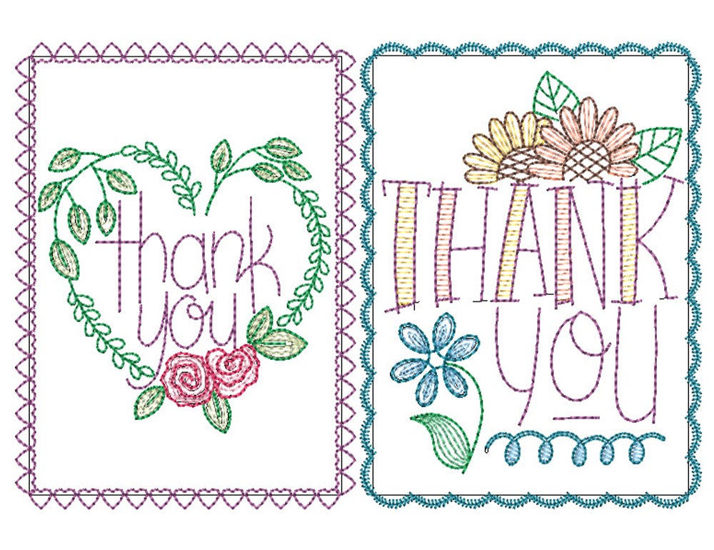 5x7 will fit on a 5x7 card with approximately 1/4-1/2 inch margin all the way around. I like to stitch my design onto Watercolor Paper, and then trim it out and mount it onto a contrasting colored cardstock.