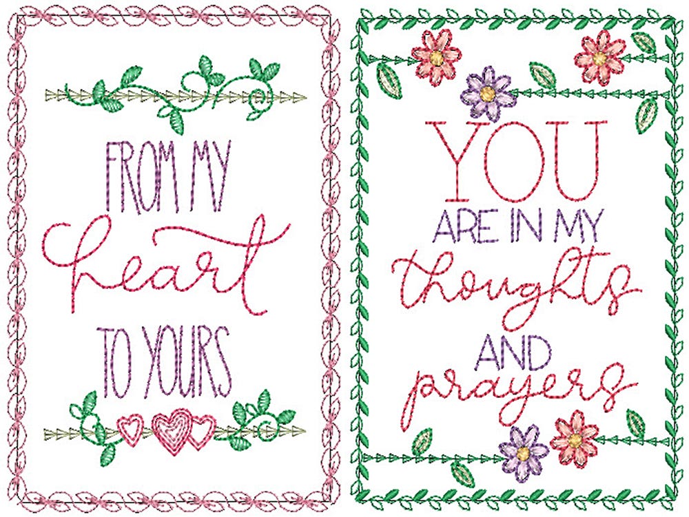 2 lovely embroidered greeting cards to send thoughts and prayers from your heart to another.