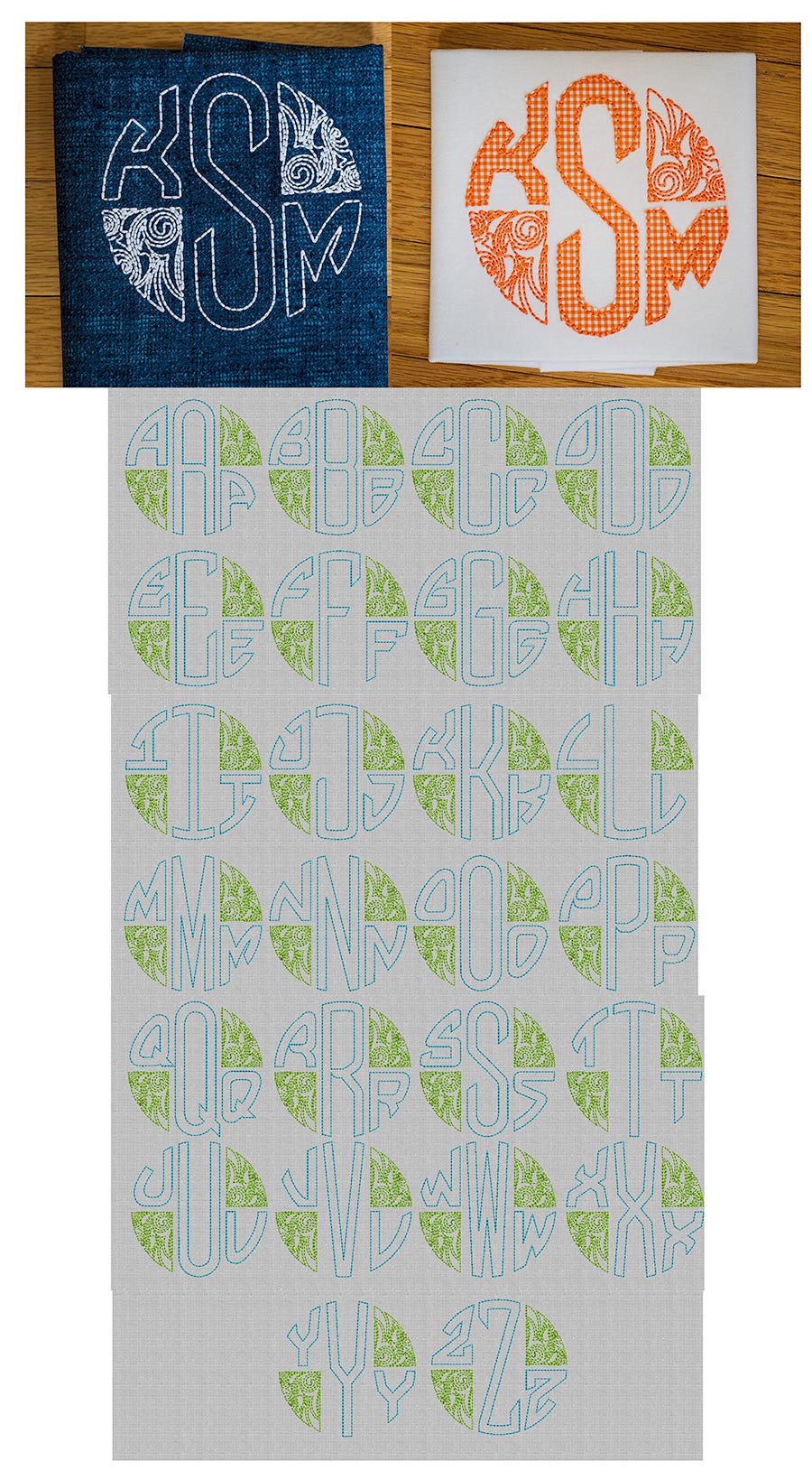 Our long awaited, beautiful, art deco inspired circular monogram is now available! Shown here in a bean stitch version with bean stitch motifs, this monogram is lovely for your embroidery needs. Would look great on a sweatshirt! Ā This version is digitized with placement lines for a raggy applique style alternative!!Ā Four sizes included: 4 inch, 5 inch, 6 inch, 7 inch. BX format also included. **please note that the satin applique and filled stitch versions are sold separately**