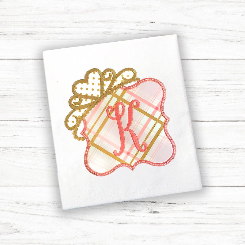This applique includes an applique decorative frame perfect for personalization! Two versions are included with purchase: