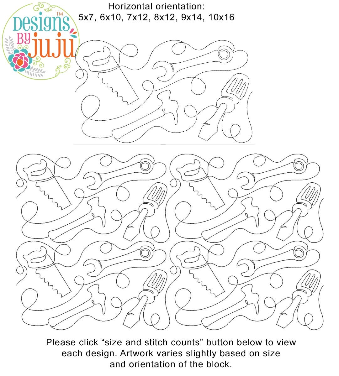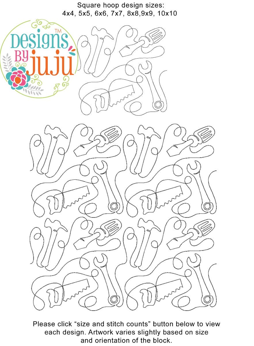 Please note: Both the scale of each pattern and arrangement of the motifs may vary based on the hoop size. Please click the "Size and Stitch Count" button to view the artwork for each size.