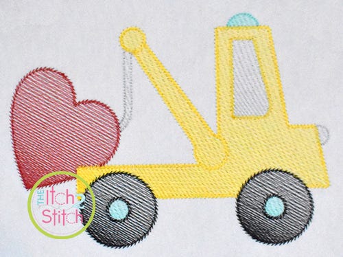The light and airy "sketch" fill pattern allows for a quick stitch out. The space between each line of stitching varies such that it is more dense at the bottom of the object than top to create the shading effect. The objects are finished off with a stem stitch outline.