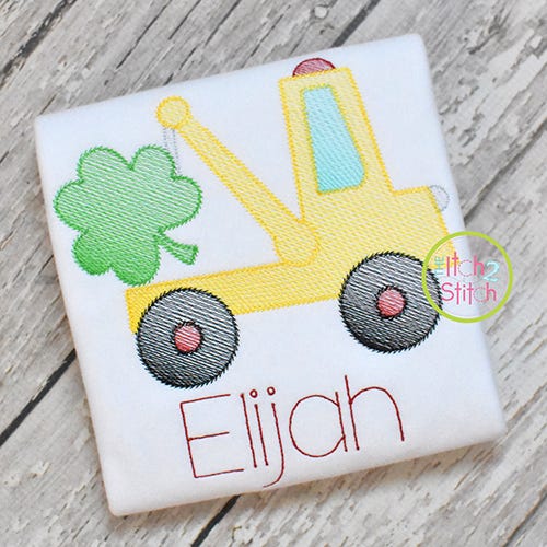 The light and airy "sketch" fill pattern allows for a quick stitch out. The space between each line of stitching varies such that it is more dense at the bottom of the object than top to create the shading effect. The objects are finished off with a stem stitch outline.