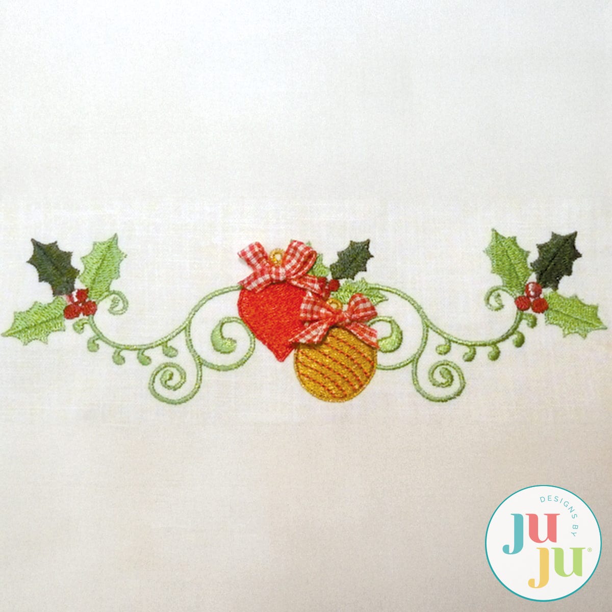 "There are a total of 10 designs in this set: 1 vertical and 9 horizontal borders. These borders can be placed along the sides of a table cloth, on pillows, curtains, totes, tree skirts, stockings, etc. The borders will also work well for shirts. Add a little holiday bling with 3D effects such as small bows and crystals. This border set coordinates with our Traditional Christmas napkin corners, for sale separately.