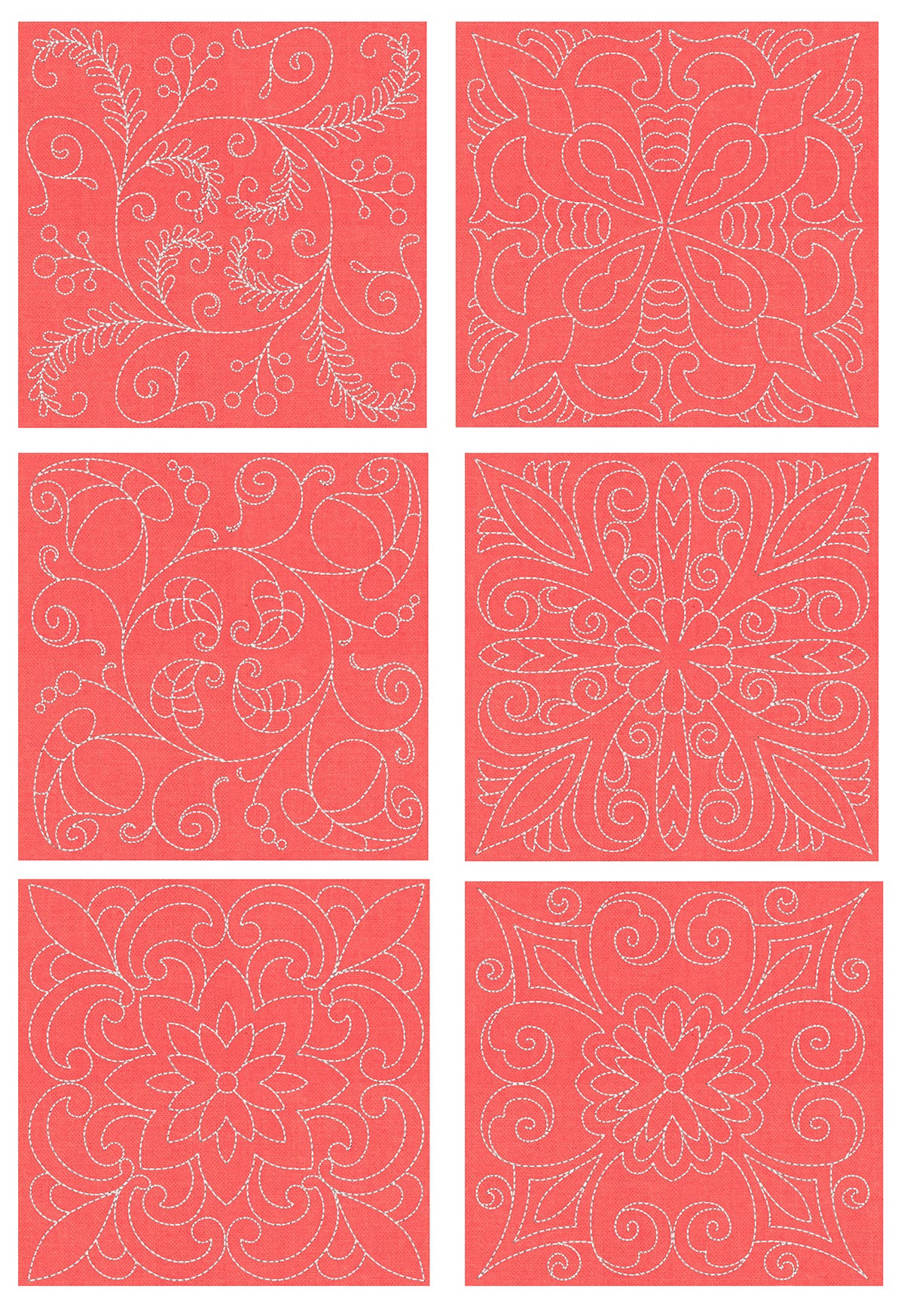6 beautiful, traditional style quilt blocks in single and triple stitch.Ā