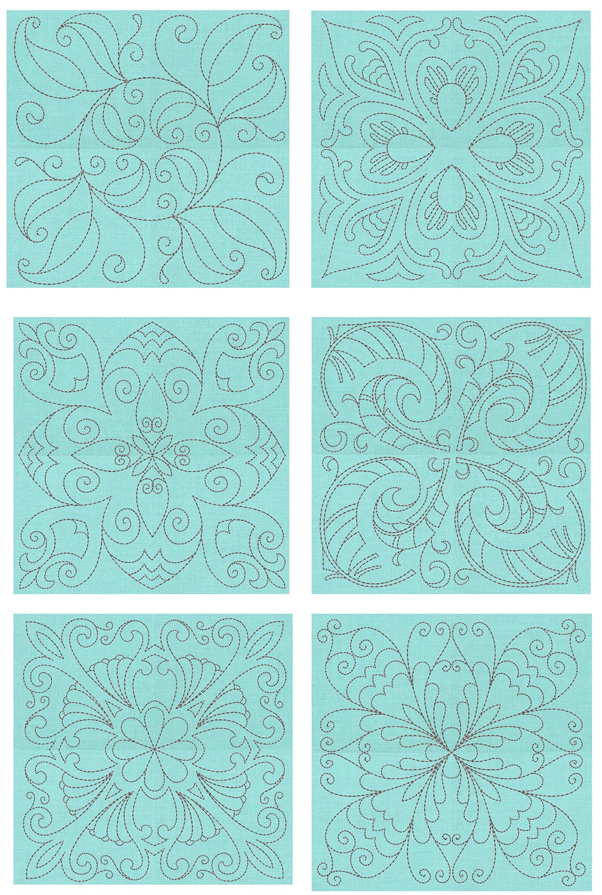 6 more beautiful, traditional style quilt blocks in single and triple stitch.Ā