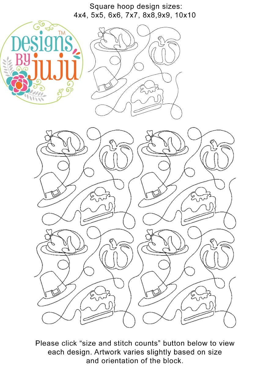 13 sizes included! 7 square sizes and 6 rectangle hoop sizes (includes files for both vertical and horizontal orientations). Reverse Point Order files are also included for use on large quilts.