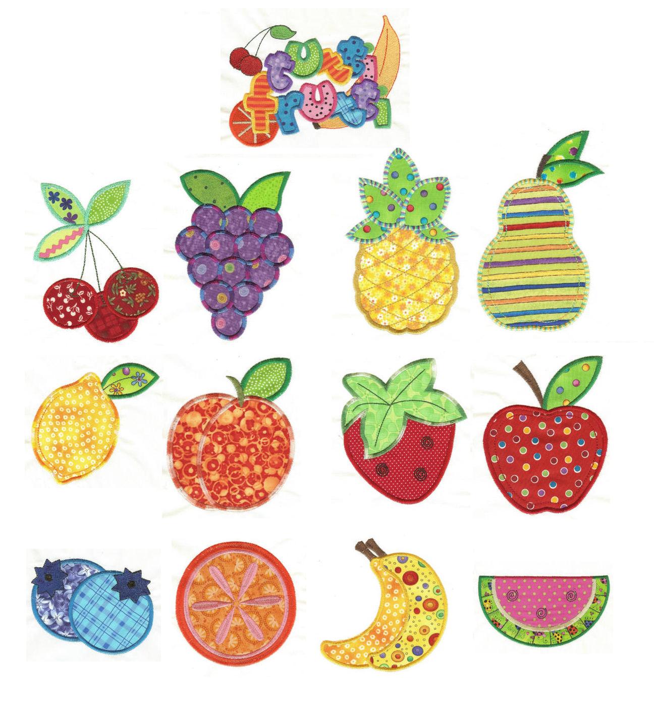 Cool off with this cute and fun fruit themed applique set! These are great for towels, tablecloths, even summer clothing with bright, fun and cheery prints! Please note, "Tutti Frutti" design only comes in 5x7 hoop size.