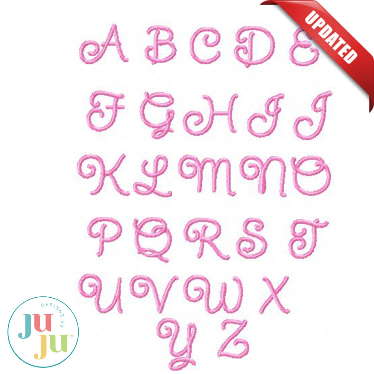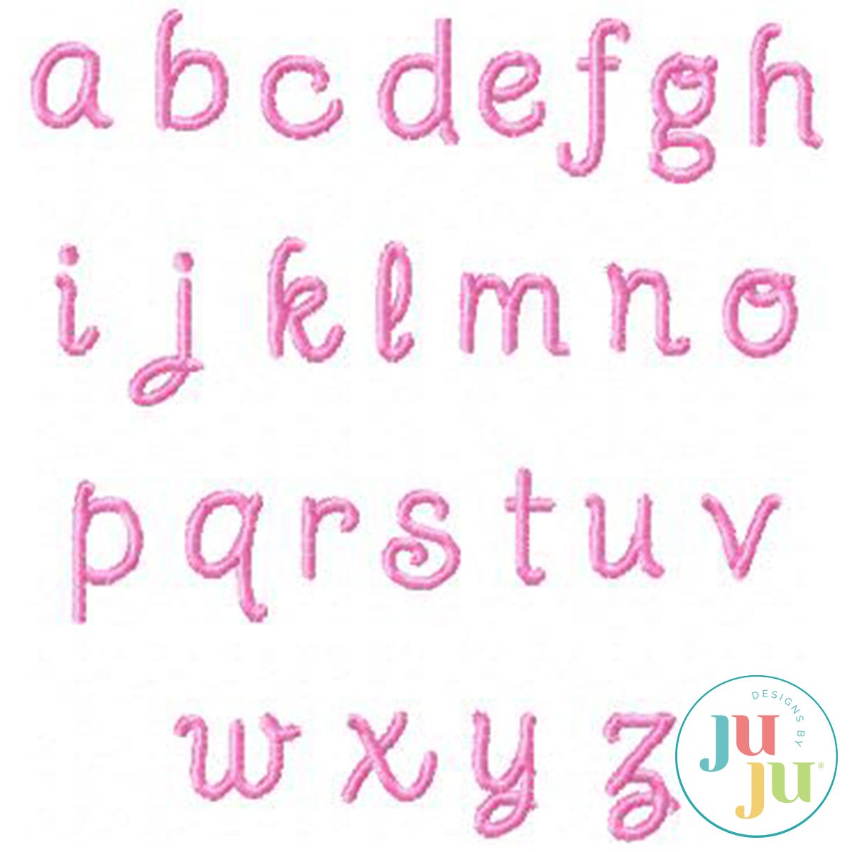 This alphabet set includes a 2" font that’s perfect for personalizing children’s items, along with a 0.75" alphabet ideal for blanket labels and tags. The 0.75" size stitches out smoothly and quickly and includes both uppercase and lowercase letters.