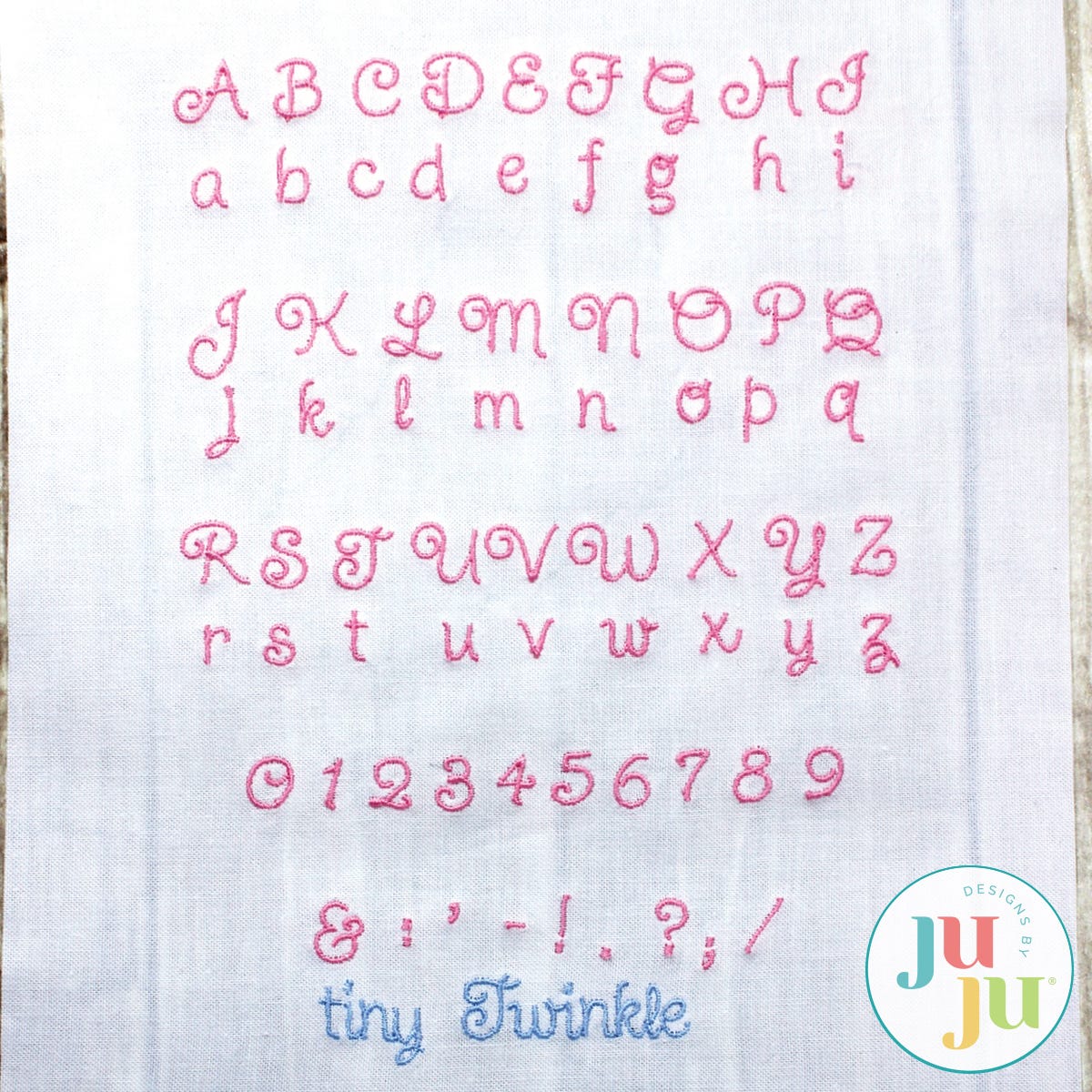 The tiny .5 font was entirely digitized manually to ensure perfect start and ending of each letter. Each letter starts on the left and ends on the right. For optimal stitchout, this font should be stitched with a 65/9 or 60/8 needle and with 60 wt thread. Despite its smallness, this playful font is very readable. Tips on how to stitch perfect small lettering are part of your download. Great for labels, heirloom stitching and for wedding hankies. Bx format included for Embrilliance users.