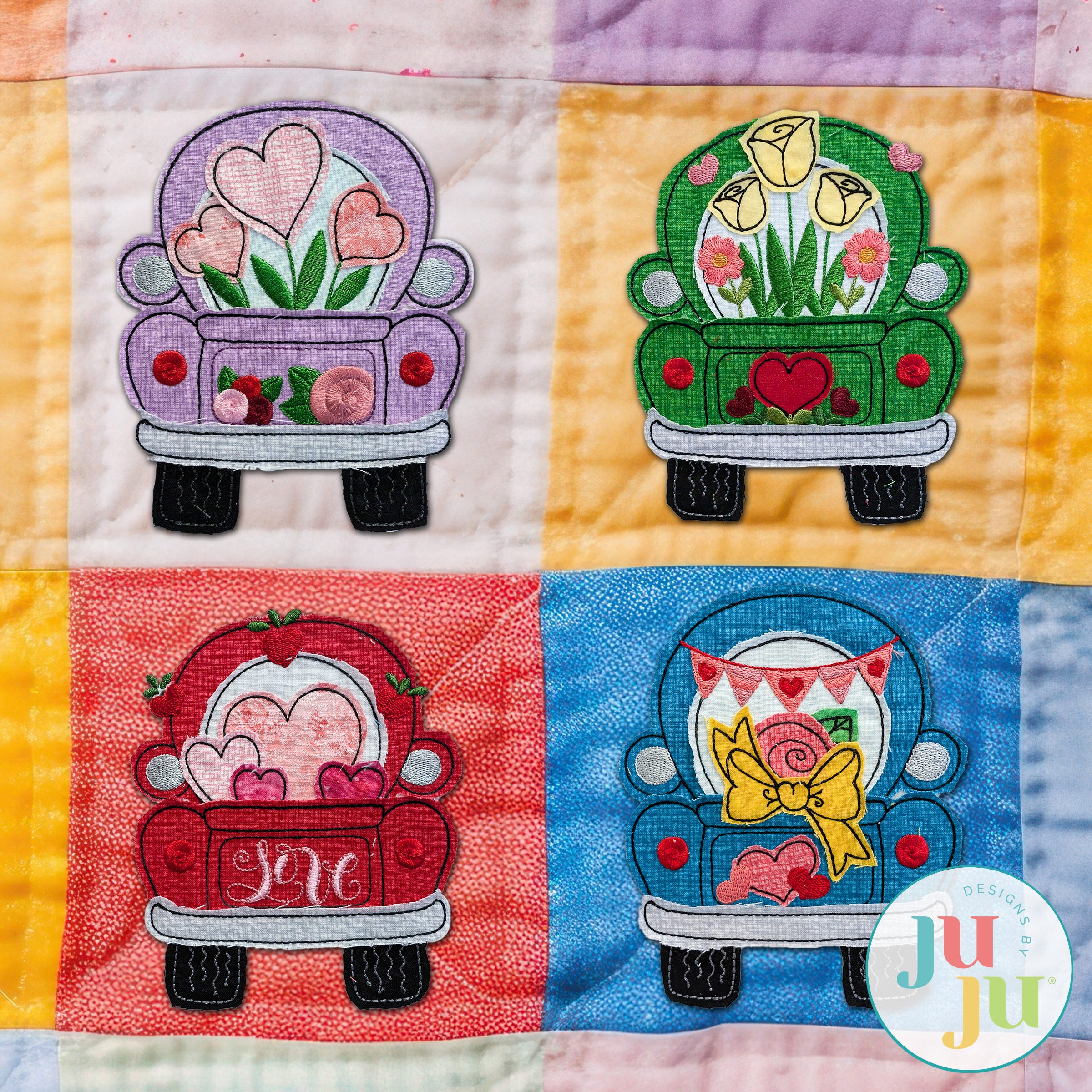 Everything you need for Valentine's Day is out for delivery! These four bean stitch applique trucks are loaded for the holidays with hearts and flowers! Four sizes included (4x4, 5x7, 6x10 and 8x8).