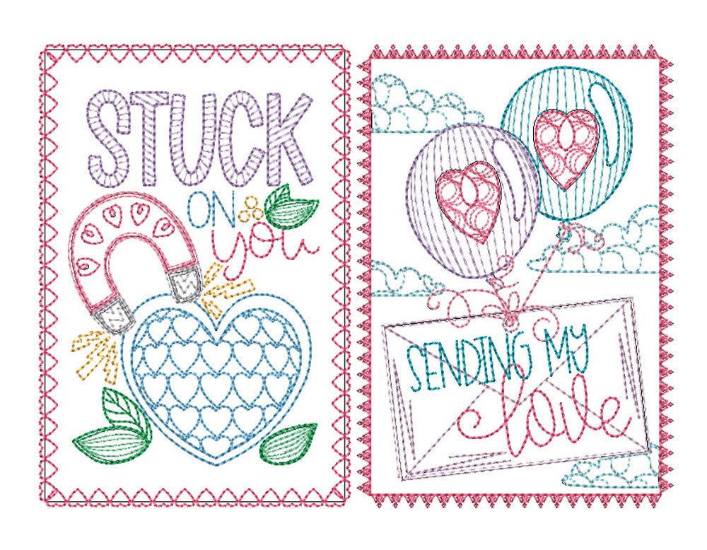 Stitching embroidery onto cardstock is fun and easy! We include a PDF in your download with some tips and tricks on embroidery onto cardstock.