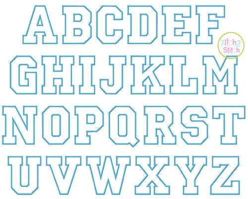 You will receive A-Z letters (26 files) in six sizes. Satin Stitch, Zig Zag and Bean Stitch applique versions included. All letters from the 2", 3" and 4" sizes fit in a 4x4 hoop except the 4" Q and W. Larger sizes require a larger hoop.