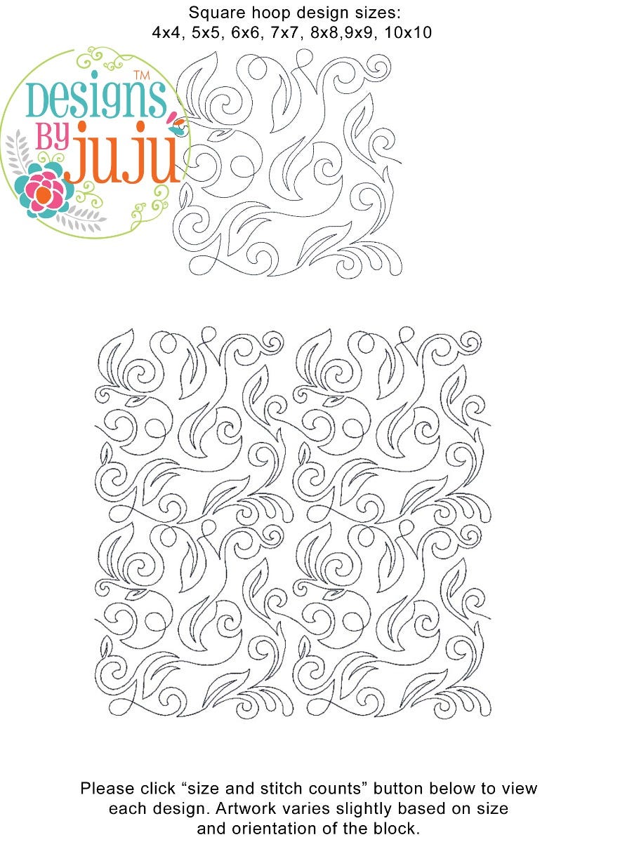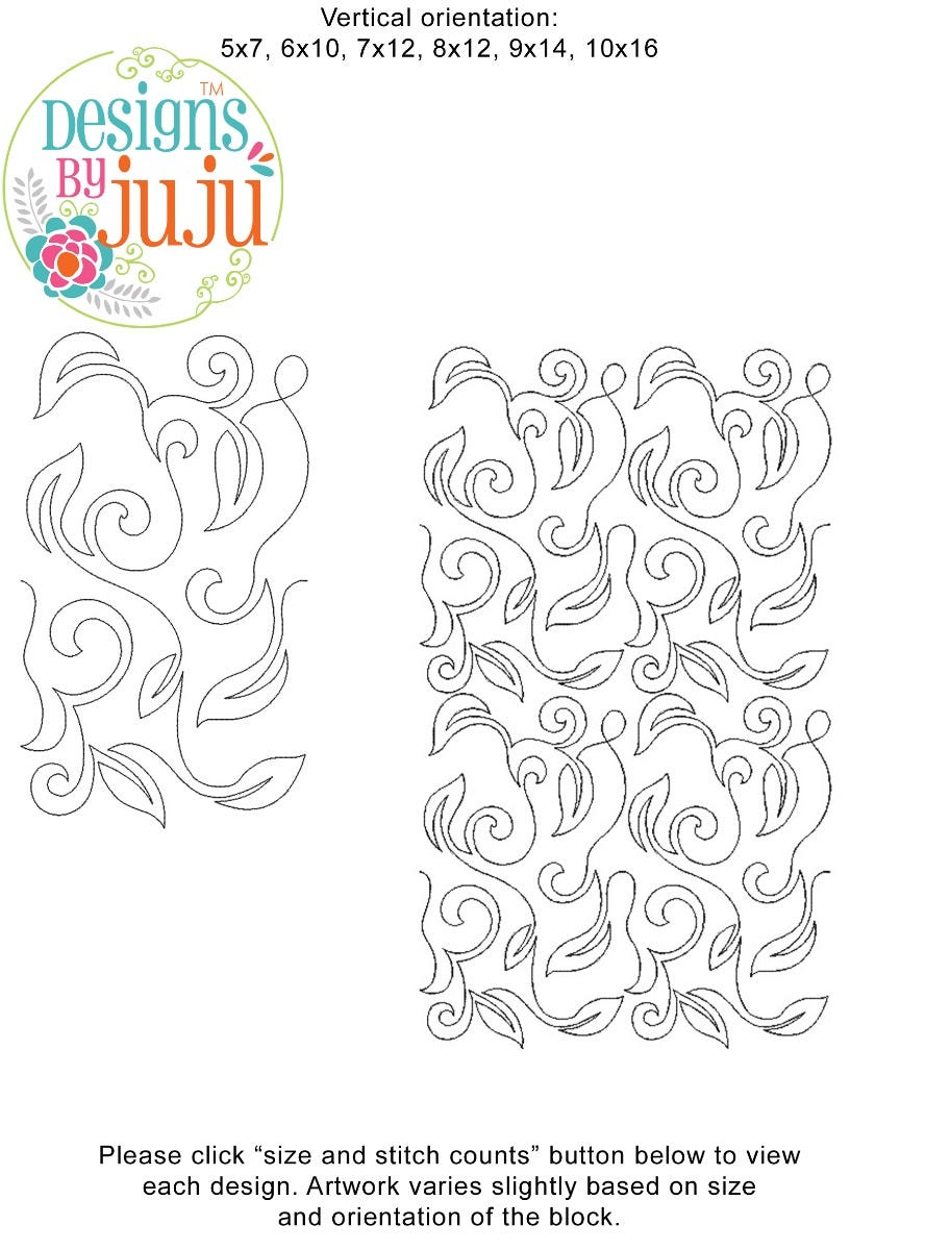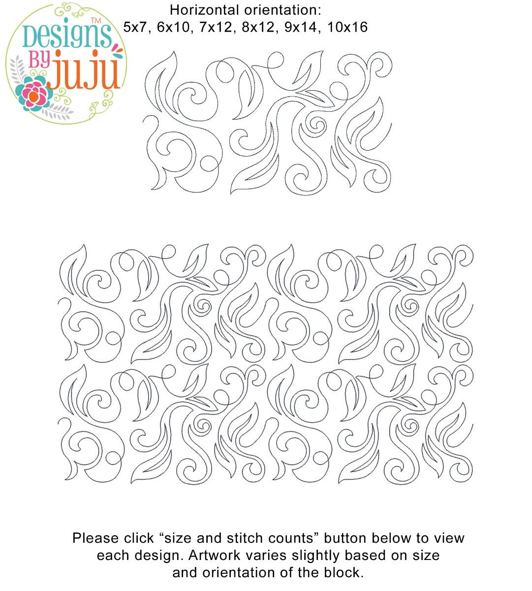 Each one of our End-to-End Quilting™ embroidery designs is an originally created design available in a large variety of block sizes. Every block is one continuous single-run line running edge to edge beginning on the left and exiting on the right. There is NO backtracking or double stitching. Each size block has been engineered and manually digitized by our team for EXACT edge-to-edge quilting precision so that when they are aligned properly in your hoop, you cannot tell where one block ends and the next one begins! ADDITIONALLY, the art has been created for each size so that when the rows are stacked on top of each other, it provides a practically seamless, professional, allover quilting effect that mimics (E2E) pantographs so you can do edge-to-edge quilting on your embroidery machine!