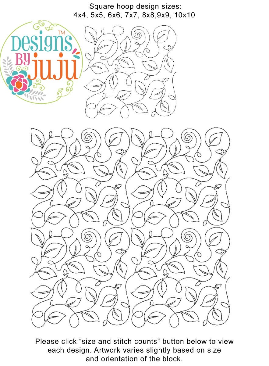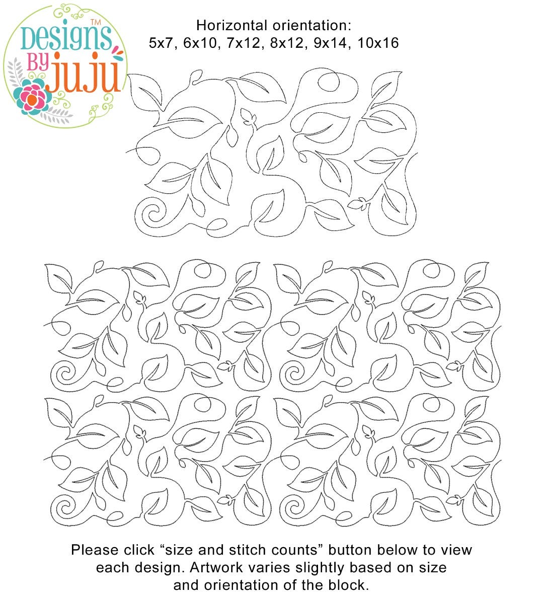 Please note: Both the scale of each pattern and arrangement of the motifs may vary based on the hoop size. Please click the "Size and Stitch Count" button to view the artwork for each size.