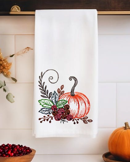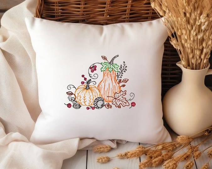 Celebrate harvest with four lovely pumpkin designs. Whether with cinnamon sticks, berries, leaves or sunflowers, they are perfect for vintage fall projects. These are bean stitch designs for a hand-stitched look. 2 sizes included: 4x4 and 5x7