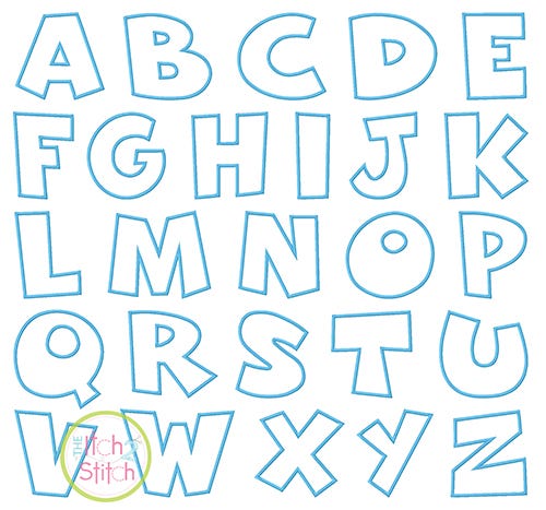 You will receive all A-Z letters (26 files) in six sizes (2", 3", 4", 5", 6" and 7"). Please note that only the 2" and 3" sizes of the font fits in a 4x4 hoop; a larger hoop is required for the 4" and larger.Ā Shown personalized with our Best Friend Forever and Jelly Bean fonts, sold separately.