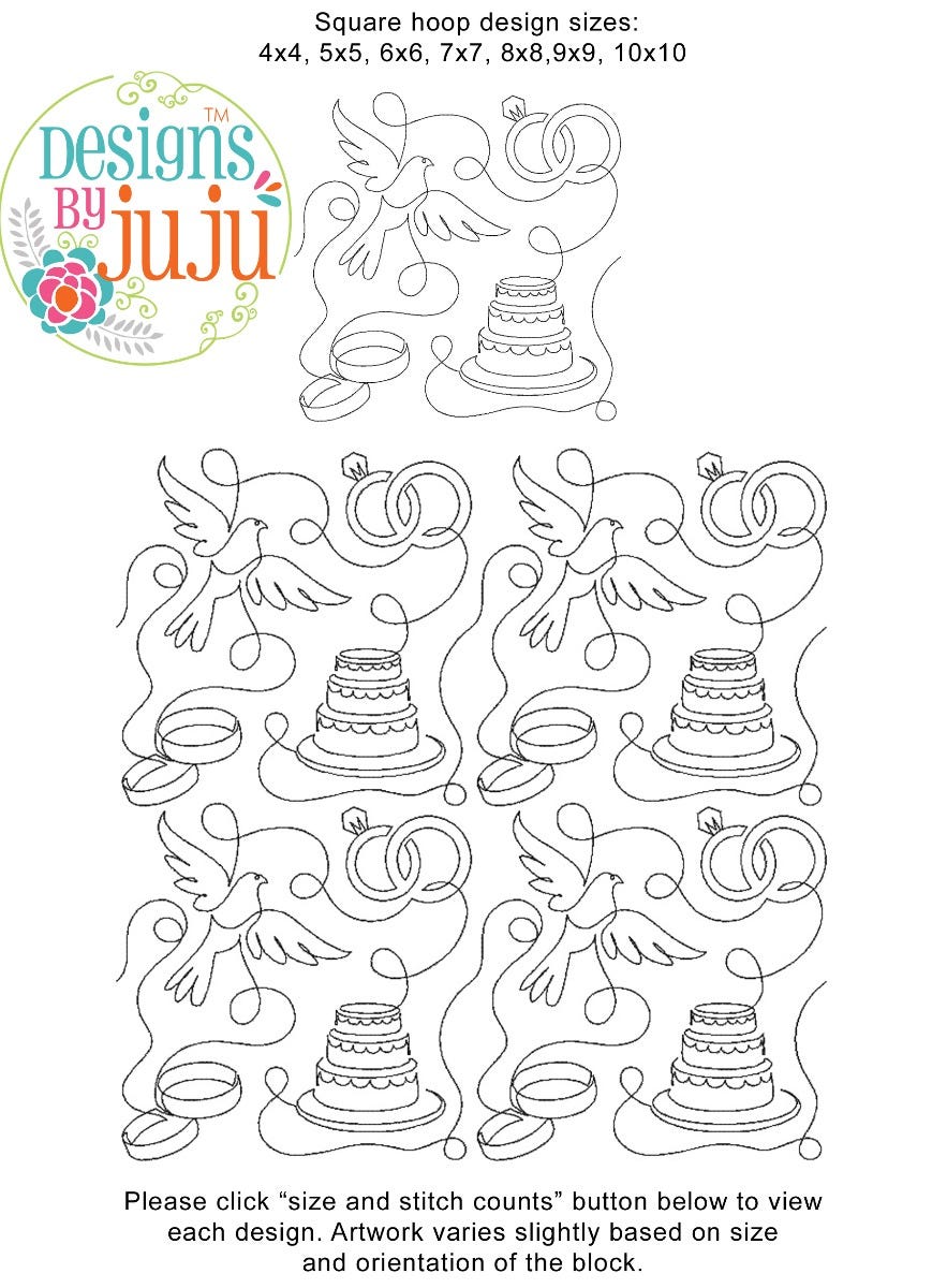 Please note: Both the scale of each pattern and arrangement of the motifs may vary based on the hoop size. Please click the "Size and Stitch Count" button to view the artwork for each size.