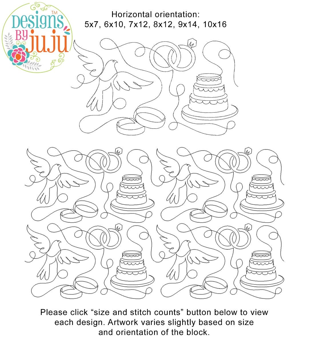 Each one of our End-to-End Quilting™ embroidery designs is an originally created design available in a large variety of block sizes. Every block is one continuous single-run line running edge to edge beginning on the left and exiting on the right. There is NO backtracking or double stitching. Each size block has been engineered and manually digitized by our team for EXACT edge-to-edge quilting precision so that when they are aligned properly in your hoop, you cannot tell where one block ends and the next one begins! ADDITIONALLY, the art has been created for each size so that when the rows are stacked on top of each other, it provides a practically seamless, professional, allover quilting effect that mimics (E2E) pantographs so you can do edge-to-edge quilting on your embroidery machine!