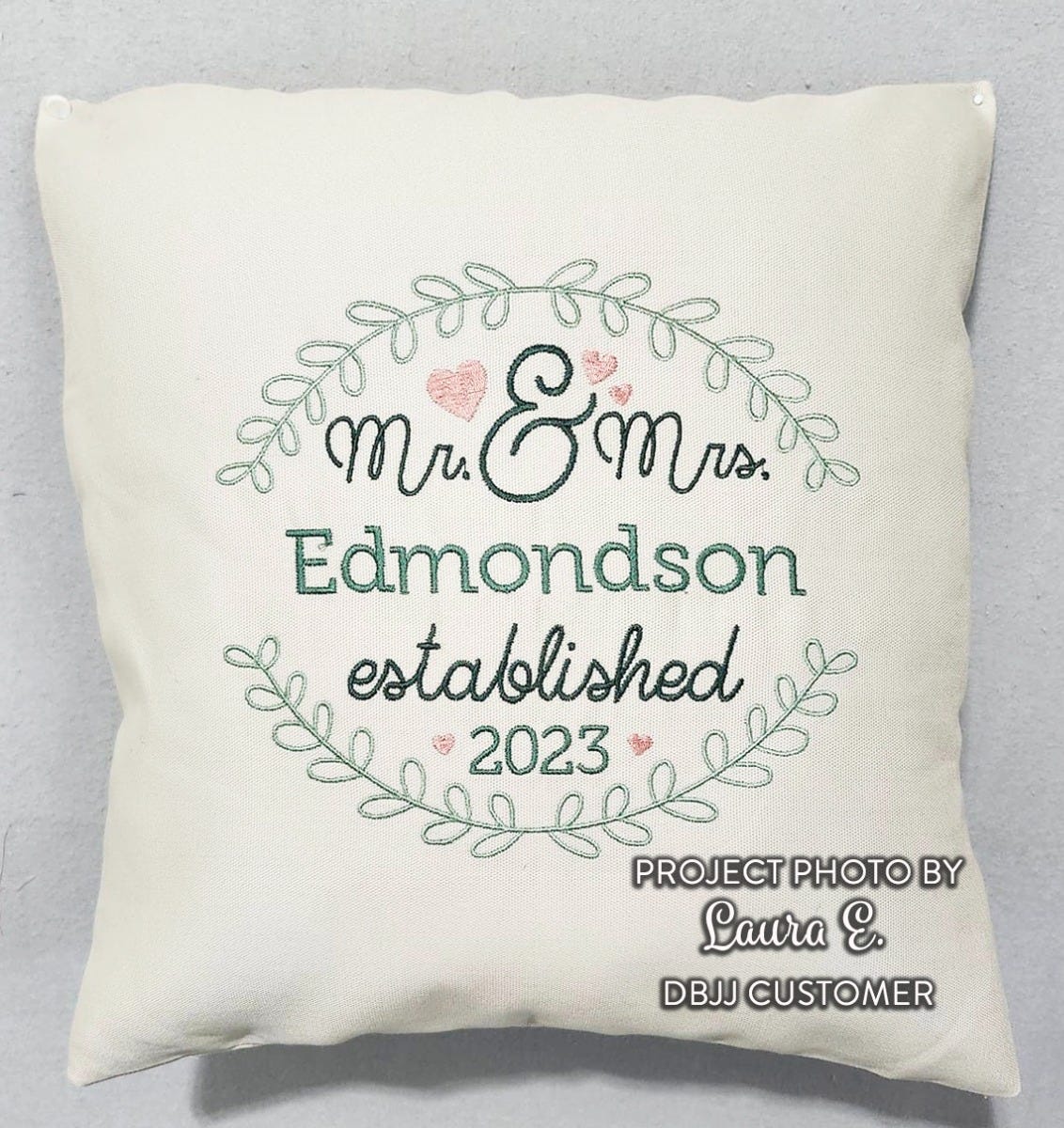 You will receive the embroidery templates shown. Customize with your own name and date with fonts from your purchased collection or those that are built in to your embroidery software. Fonts are NOT included with these templates.