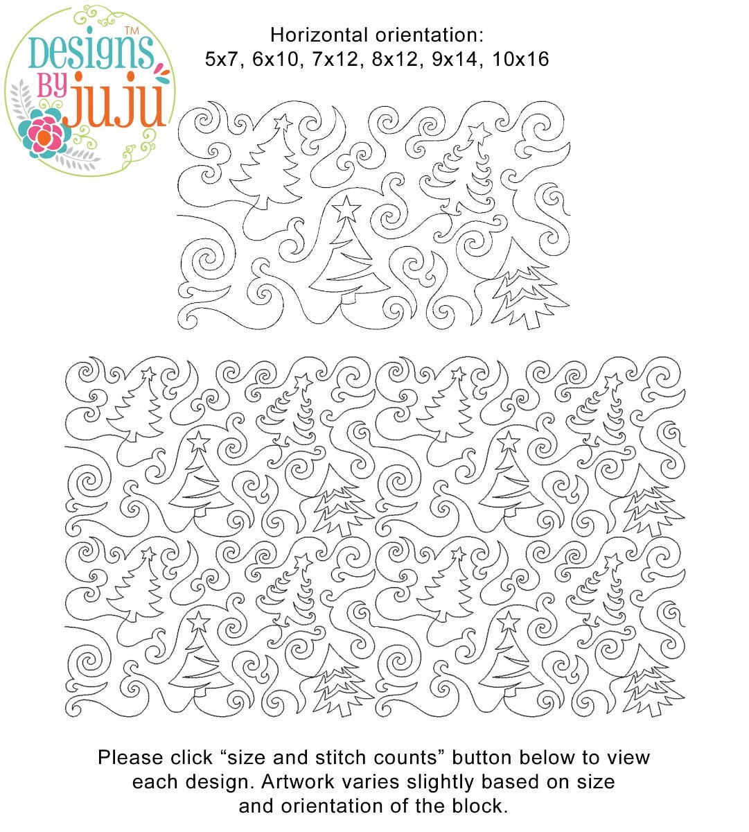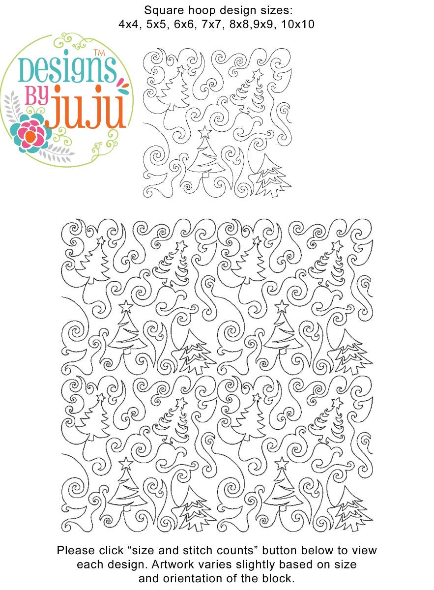 Please note: Both the scale of each pattern and arrangement of the motifs may vary based on the hoop size. Please click the "Size and Stitch Count" button to view the artwork for each size.