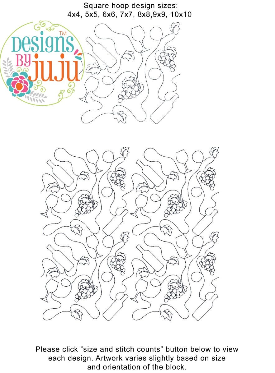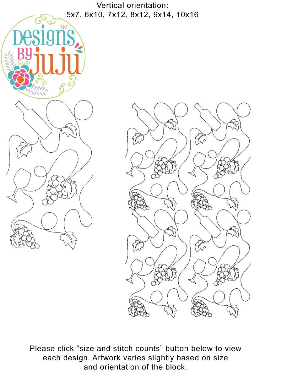 Please note: Both the scale of each pattern and arrangement of the motifs may vary based on the hoop size. Please click the "Size and Stitch Count" button to view the artwork for each size.