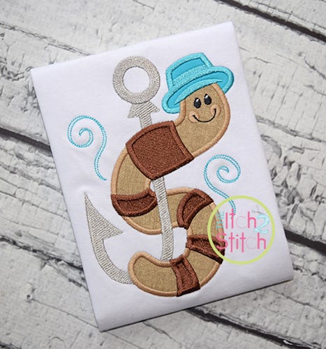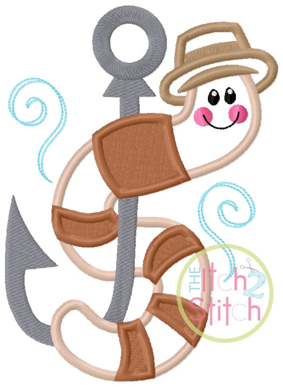 Please note the stripes are fill stitch, the worm and hat are applique.