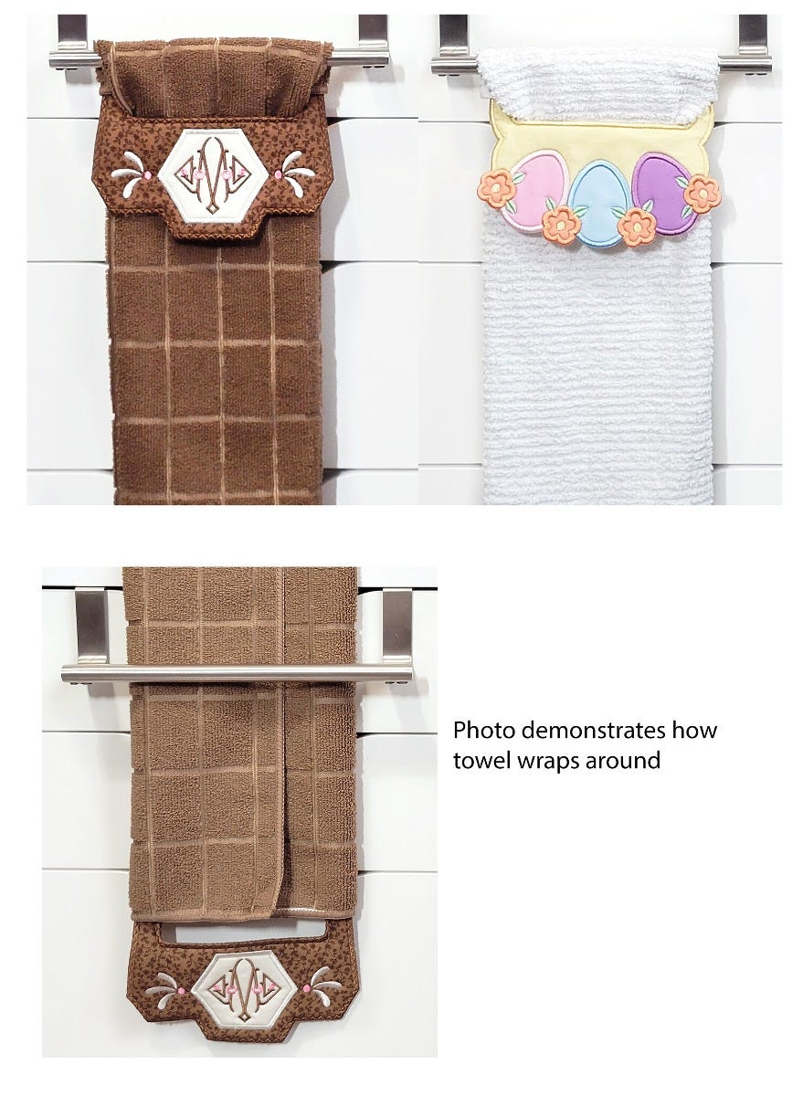 This set includes 2 towel hanger designs: Hexagon and Easter Egg Trio.Ā