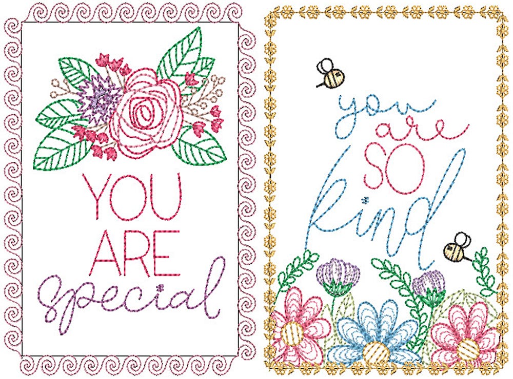 2 more sweet and fun embroidered greeting cards to send a note of kindess to someone special!