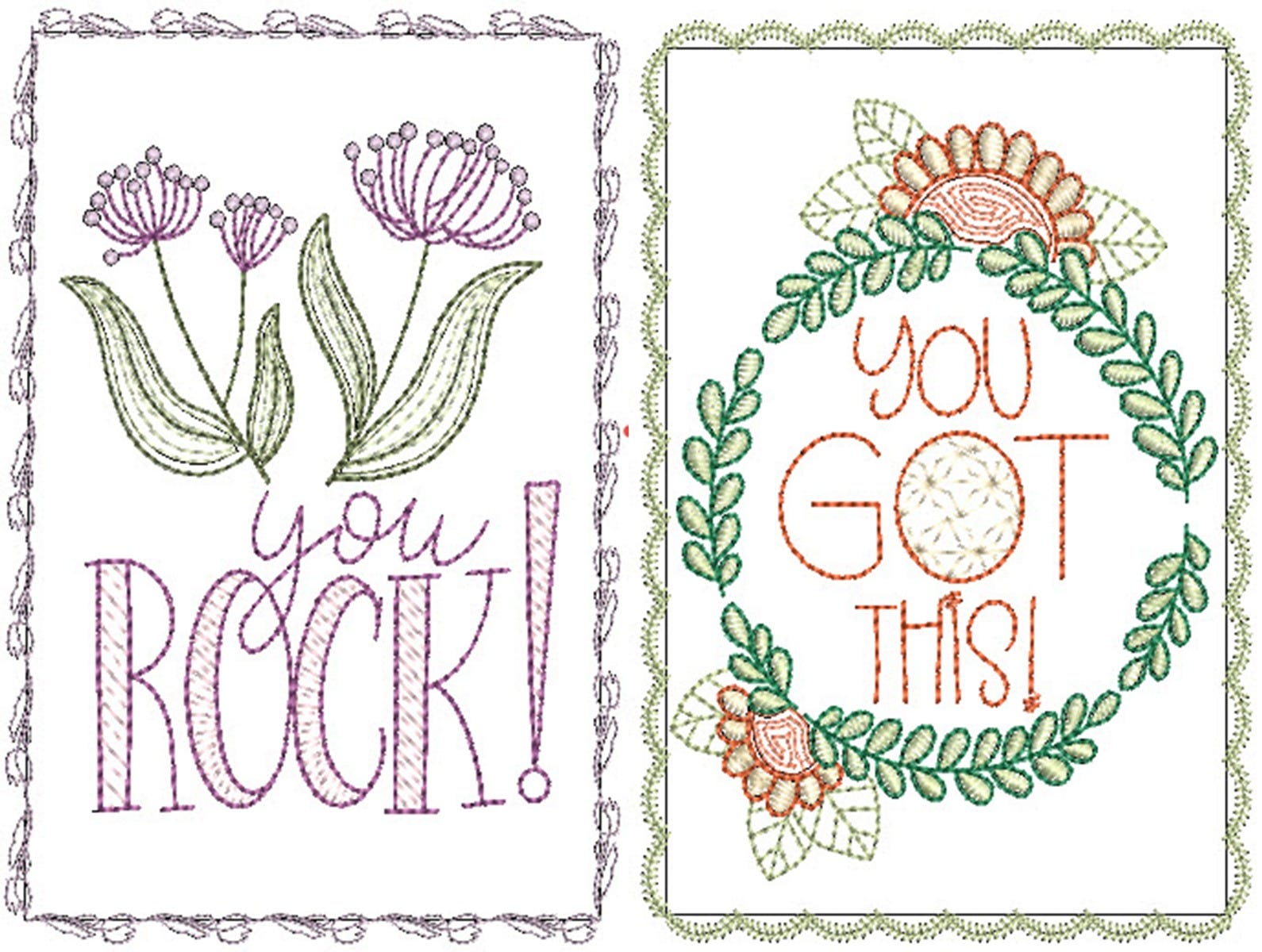 2 more sweet and fun embroidered greeting cards to send encouragement to someone special!