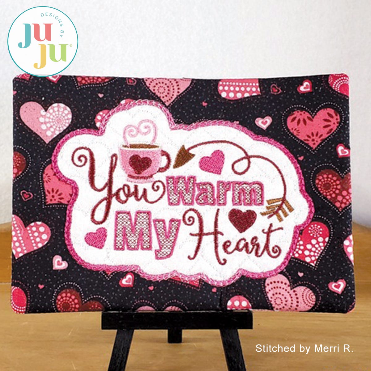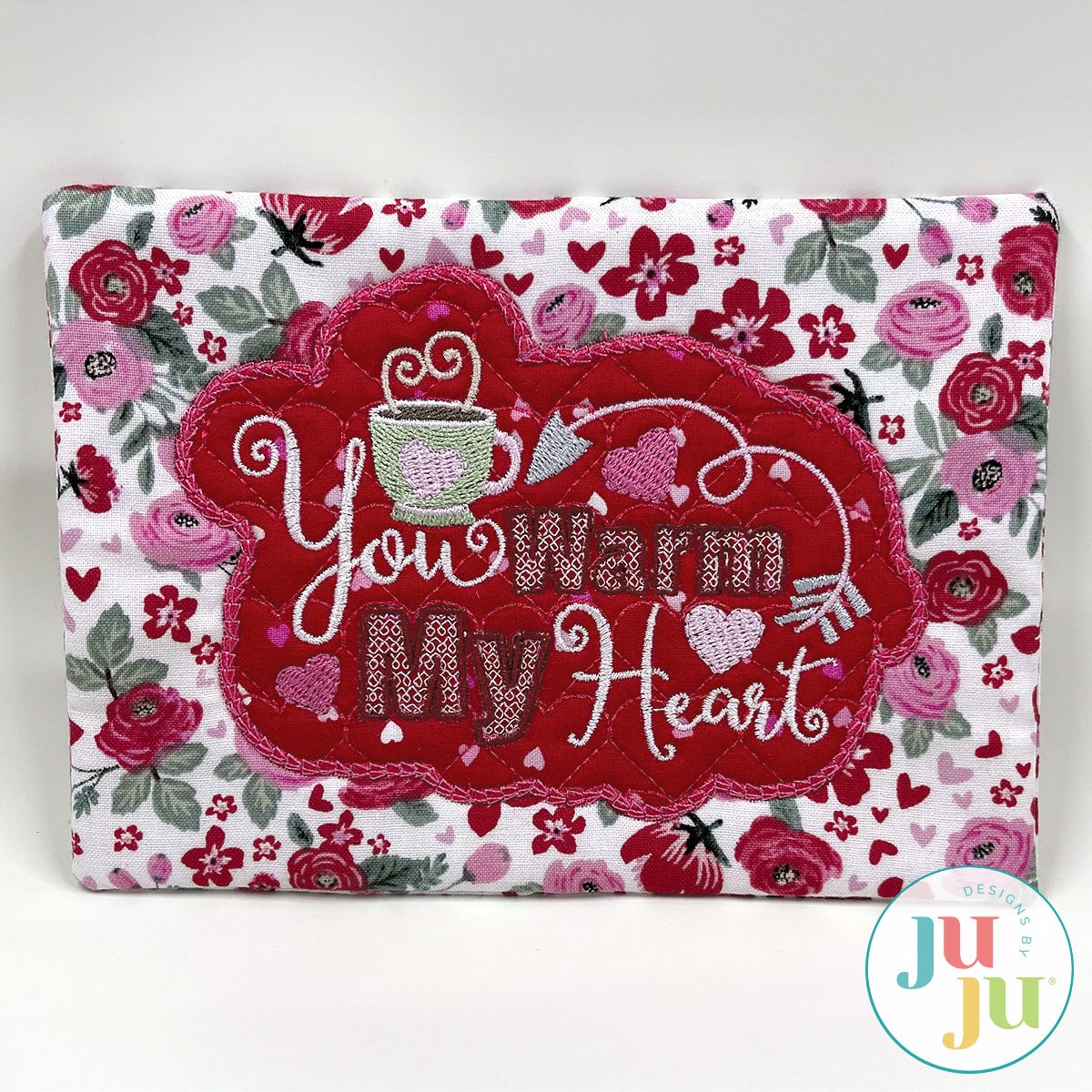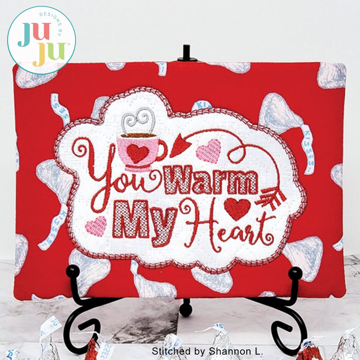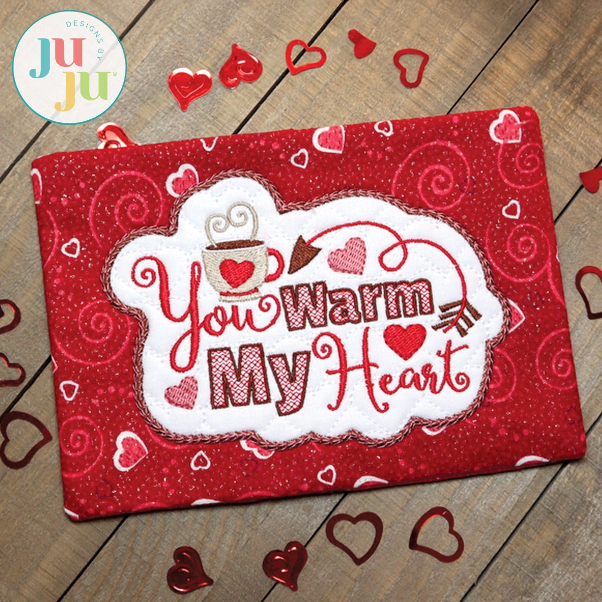 Here is a mug rug for that person who is special to you. Perfect for Valentine’s day but also appropriate any time of the year. The center of the mug rug is reverse appliqued (we show you how to do that) and then gets quilted with a heart motif. The applique edge uses a decorative stitch.