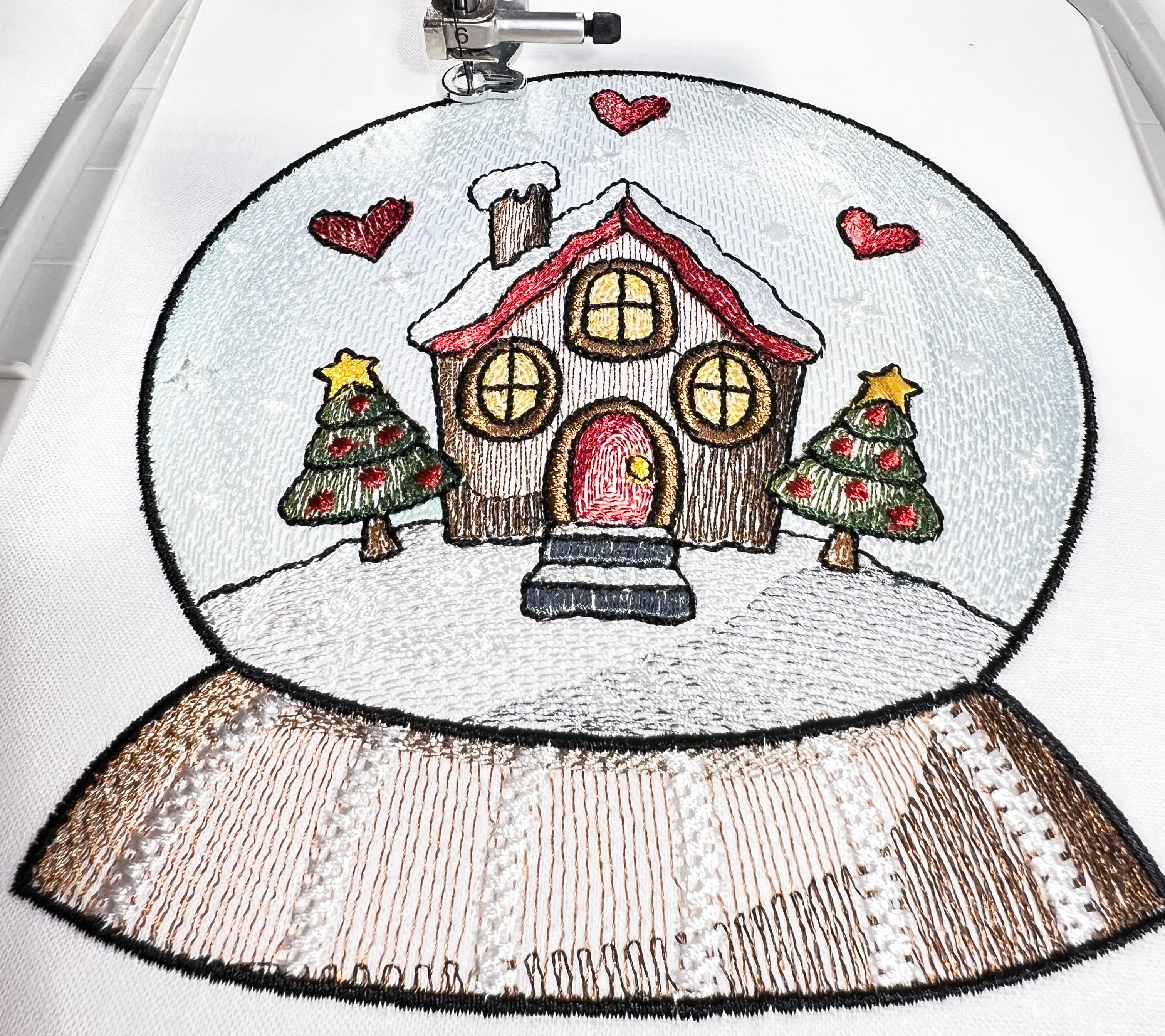 Snow is falling this Yuletide! The snowglobes in this set (snowman, reindeer, house and Christmas tree) feature multiple color layers of lighter density fill to create a blended, variegated, textured look. Four sizes included (4x4, 5x7, 6x10 and 8x8).