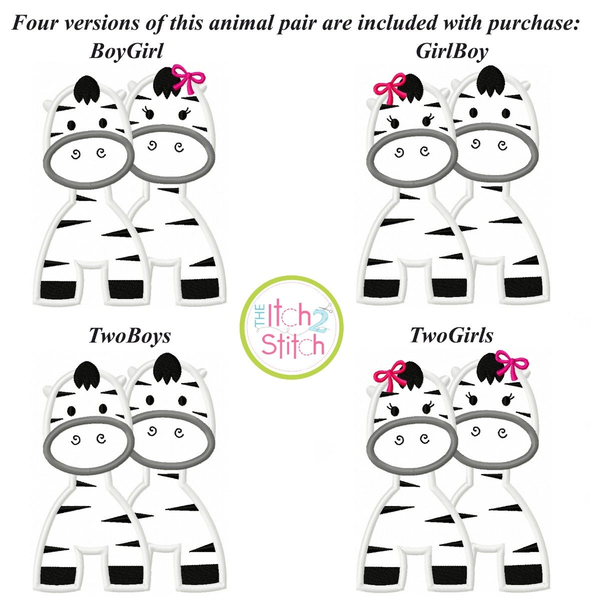 Four different variations of this animal pair are included with purchase (two boys, two girls, boy/girl, girl/boy); the girls have eyelashes and a hairbow, the boys do not.
